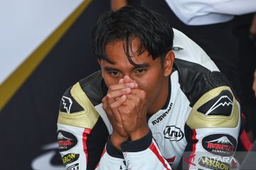 Pembalap Idemitsu Honda Team Asia asal Indonesia Mario Aji bersiap mengikuti sesi latihan bebas 2 Moto2 Indonesia 2025 di Sirkuit Internasional Pertamina Mandalika, Lombok Tengah, Nusa Tenggara Barat, Sabtu (4/10/2025). Latihan bebas 2 tersebut diikuti Mario sebagai persiapan menjelang kualifikasi Moto2 Indonesia. ANTARAFOTO/Aditya Pradana Putra/agr