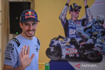 Pembalap MotoGP Alex Marquez menjawab pertanyaan saat temu sapa di Jakarta, Selasa (30/9/2025). Alex Marquez menyapa penggemarnya sebelum mengikuti ajang balapan MotoGP 2025 seri ke-18 atau Pertamina Grand Prix of Indonesia 2025 yang akan digelar pada 3-5 Oktober 2025 di Sirkuit Mandalika, Lombok, Nusa Tenggara Barat (NTB). ANTARA FOTO/Fauzan/nz