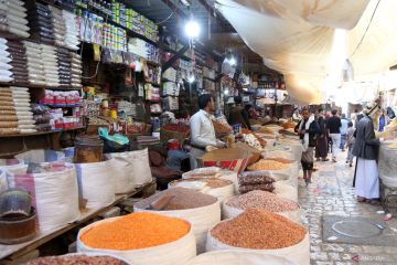 Warga berbelanja di salah satu pasar di Kota Tua Sanaa, Yaman, Selasa (3/2/2026), yang terdaftar sebagai Situs Warisan Dunia UNESCO. Kota Tua Sanaa di Yaman, yang terdaftar sebagai Situs Warisan Dunia UNESCO, merupakan rumah bagi lebih dari 6.000 bangunan bertingkat unik yang terbuat dari batu bata lumpur yang berusia 2.500 tahun. ANTARA FOTO/Mohammed Mohammed/Xinhua/aww.